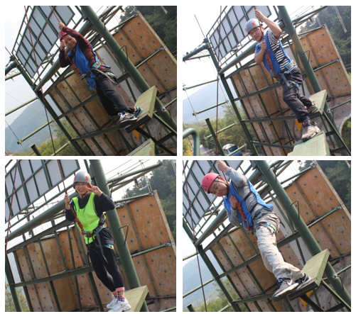 高空斷橋項(xiàng)目中,各隊(duì)隊(duì)員為了本隊(duì)榮譽(yù),依次通過了離地8米高的斷橋,挑戰(zhàn)了自我,突破了自身極限。